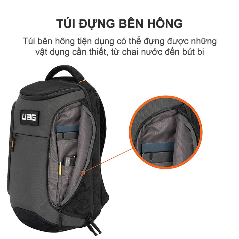 Balo chống sốc chống nước UAG STD 24 Lít có kích thước 56 x 33 x 20 (cm) nhẹ 1.088 (kg) được làm từ chất liệu Polyester chống thấm nước, cộng thêm khả năng chống sốc và sức chứa lớn, bạn có thể an tâm khi mang theo laptop, tablet, hoặc bất kì thiết bị nào - thích hợp mang đi học, đi làm hay những chuyến du lịch ngắn ngày.