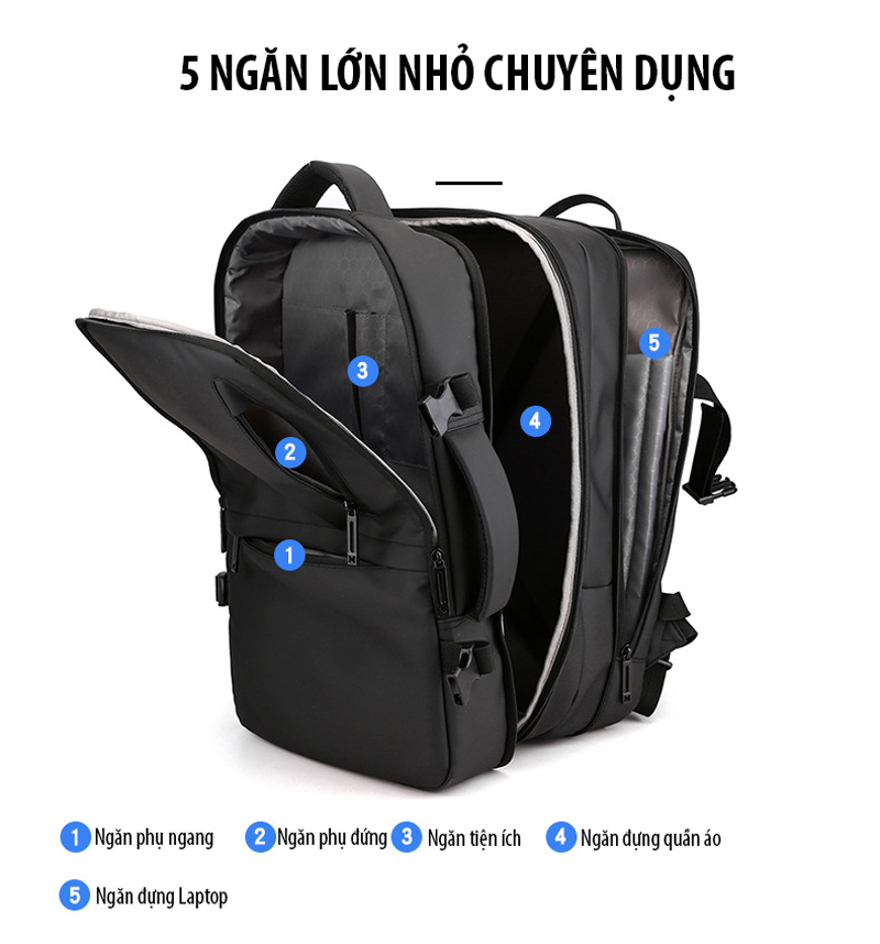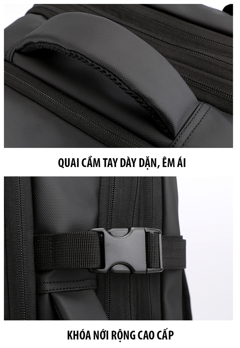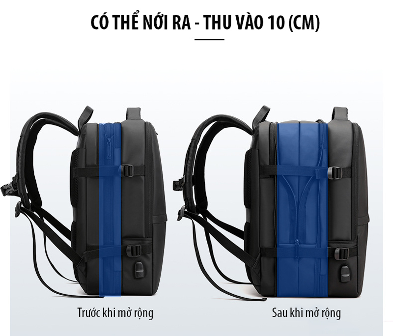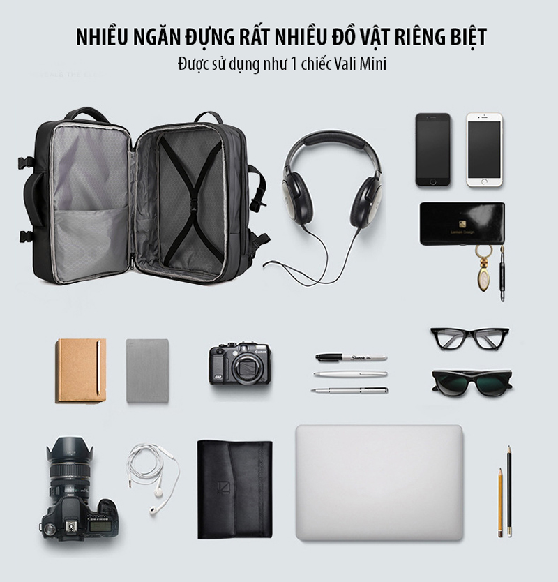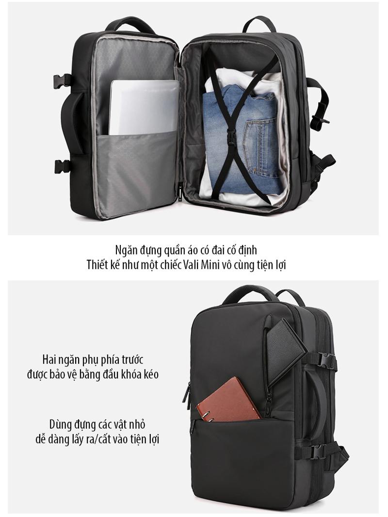 Balo du lịch đa năng đựng được Laptop 16 inch giúp mang theo bên mình để làm việc, đi học, ... hay những chuyến đi ngắn ngày bởi thiết kế rất nhiều ngăn, mở ngang như 1 vali, cáp sạc ẩn an toàn, đặc biệt là có thể nới rộng/thu lại đến 10cm hỗ trợ mang nhiều đồ vật hơn nhưng lại rất gọn gàng.