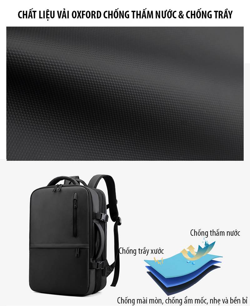 Balo Laptop 16 inch từ chất liệu vải Oxford chống thấm nước bên ngoài giúp bạn đi mưa hay vô tình bị đổ tràn nước lên balo mà không bị ướt gây hư hỏng đồ vật và lớp lót Polyester chống trầy xước khi để chung các đồ vật sắc nhọn khác và hỗ trợ kháng bụi tối ưu trong quá trình sử dụng, chất liệu thân thiện với môi trường và khả năng tản nhiệt tốt.