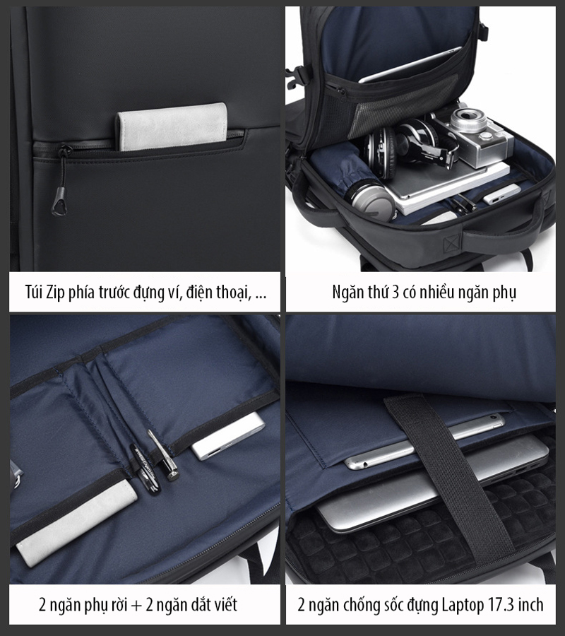 Balo đa năng, Balo du lịch, Balo đựng Macbook, Laptop 17.3 inch kèm cáp sạc và khe phone ẩn 4 ngăn lớn có thể nới rộng