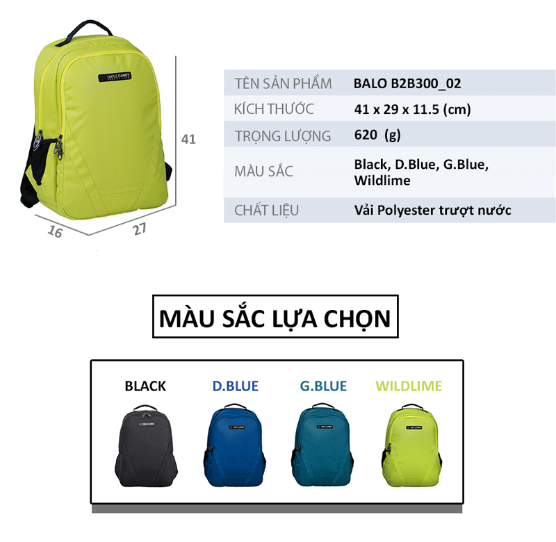 Dòng B2B300_02 này có 4 màu chọn lựa: Wildlime, B.Blue, G.Blue, Black nổi bật giúp bạn tạo nên sự khác biệt, đầy cá tính .