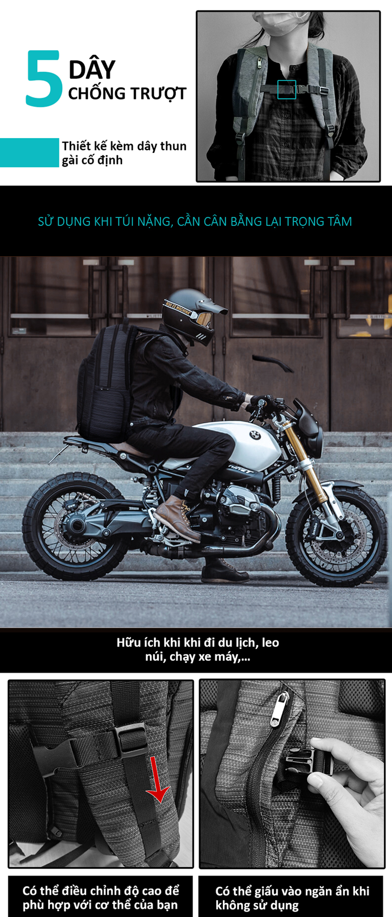 Ngoài ra, ngăn hai bên hông liên kết với thân chính thành một ngăn đựng đồ rộng rãi có khóa chắc chắc chắn bạn cũng có thể đựng thẻ xe, chìa khóa, chai nước, ô dù,.... Ngăn ẩn mặt lưng đựng điện thoại, hộ chiếu, ví, nữ trang,...