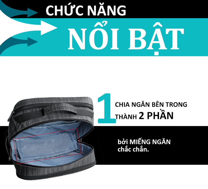 Ngăn thứ hai có diện tích rộng có thể đựng thiết bị lên đến 17 inch và các ngăn được chia rõ ràng nhờ miếng ngăn chắc chắn để đựng sách vở, tài liệu, quần áo, máy ảnh, passport, sổ tay, điện thoại, pin sạc dự phòng, ví, những vật cần thiết cho những chuyến đi ngắn ngày hay đi làm.