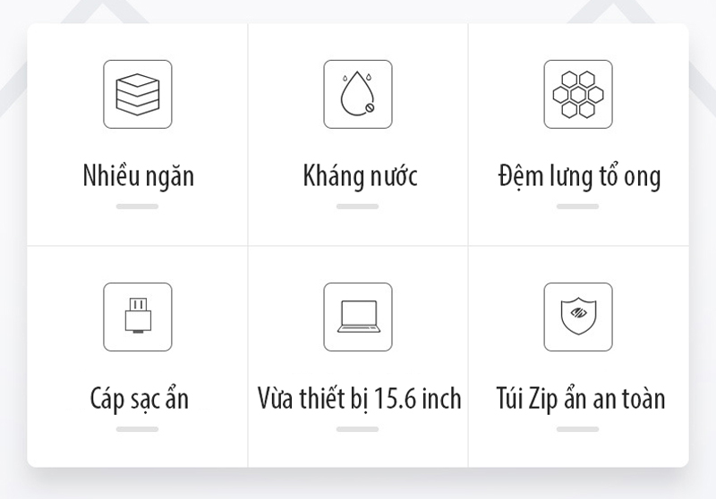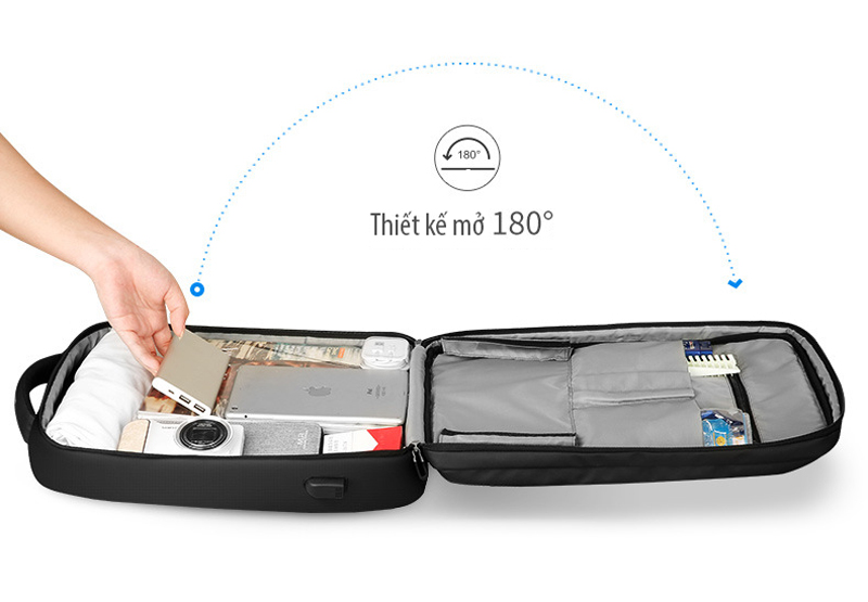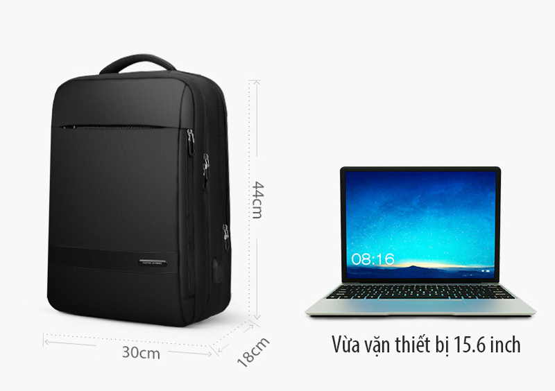 - Loại 2 ngăn chính gồm ngăn đứng phía trước và ngăn phía sau kèm ngăn chống sốc có đệm dày đựng tối đa thiết bị 15.6 inch có đai cố định giữ thiết bị không rơi ra ngoài hay lắc qua lại giúp chống sốc tốt nhất. Đối diện là túi Zip nhỏ đựng ví, điện thoại, ... 2 ngăn phụ rời đựng pin sạc dự phòng và 2 ngăn dắt bút. Không gian còn lại khá rộng bạn có thể đựng tài liệu, sách vở, 3-4 bộ quần áo, ...