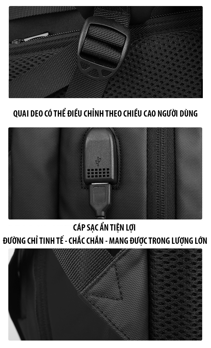Balo đa năng có cấu trúc hoàn thiện, an toàn cho người dùng, tỉ mỉ từng đường kim mũi chỉ, dây kéo cao cấp không bị gì rít, đầu khóa kéo dài giúp cầm kéo dễ dàng, nhẹ nhàng, êm mượt, quai đeo thoát nhiệt và có thể điều chỉnh nới dài – thu ngắn theo chiều cao người dùng vô cùng linh hoạt.