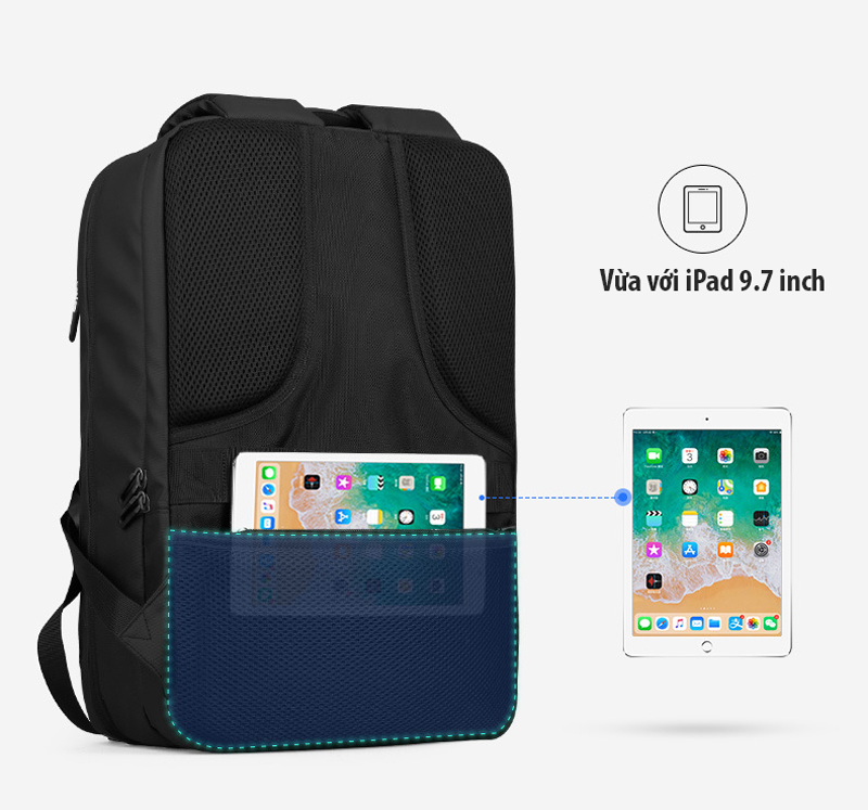 Không những thế, túi Zip khóa kéo ở mặt lưng của balo có thể đựng vừa 1 chiếc iPad, điện thoại, ví tiền, vật quan trọng tránh móc túi hay rơi rớt cũng là điểm nổi bật ở balo này.