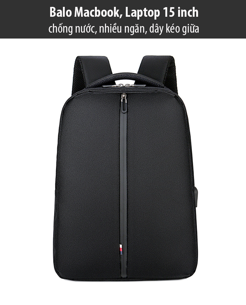 Balo đựng Macbook, Laptop 15.6 inch chống nước, cáp sạc ẩn, dây kéo giữa