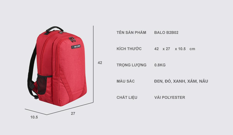 Balo Laptop 14 inch chính hãng SimpleCarry B2B02 có kích thước 41 x 27 x 10.5 (cm) nhỏ gọn, chỉ 0.8 (kg) mỏng nhẹ, vừa tầm tay dễ cầm nắm hay mang đi bất cứ đâu mà không bị vướng víu. Nhưng balo lại chứa được trọng tải tối đa 25 (kg) giúp bạn đựng được nhiều đồ vật, đồ cá nhân, laptop, ... tránh bị quên khi ra ngoài.
