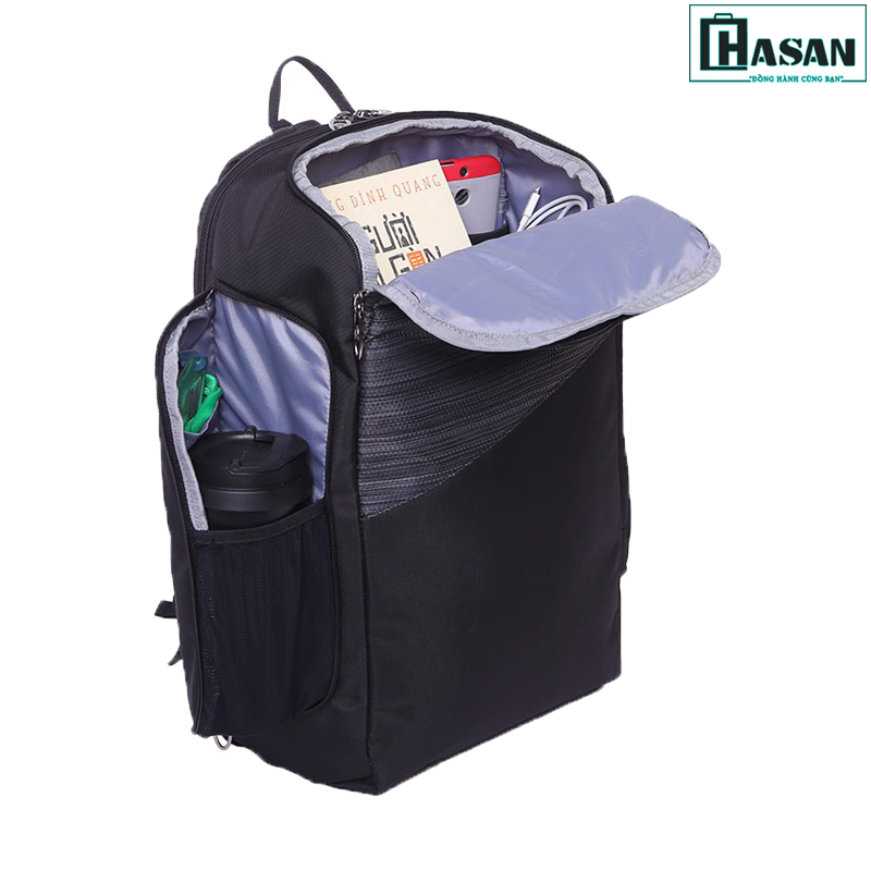 Bên trong túi vuông rộng mở nắp bên trên dùng đựng sách vở, tài liệu, ngăn dắt bút, ngăn phụ rời đựng điện thoại, pin sạc dự phòng, ngăn lưới đựng adapter, chuột, tai phone, ... vô cùng thoải mái và dễ dàng tìm kiếm đồ vật bên trong.