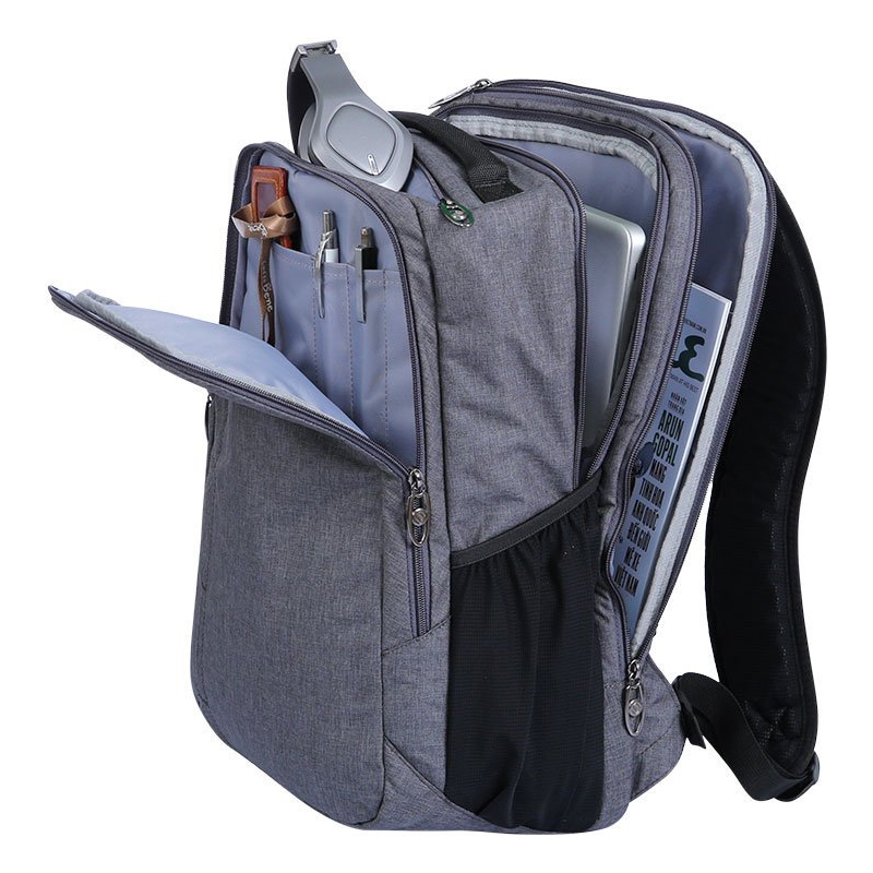 Balo rất nhiều ngăn gồm: Ngăn chính có túi vuông rộng đựng sách, vở, tài liệu, ... Ngăn chống sốc riêng biệt được bảo vệ bằng đầu khóa kéo đựng Laptop, Macbook, iPad, Kindle, ... với lớp mút PE chống sốc. Hai bên hông còn có 2 ngăn lưới đựng adapter, chai nước, vật linh tinh, ... Túi phụ rời phía trên đựng các đồ vật thường xuyên lấy ra cất vào dễ dàng như tiền lẻ, thẻ xe, thẻ card, ... Còn túi phụ phía trước nhỏ có khóa kéo đựng sổ tay, kèm ngăn dắt viết, điện thoại, pin sạc dự phòng, tai nghe, ...