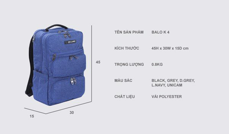 Balo Laptop 15.6 inch thương hiệu SimpleCarry K4 có kích thước 45 x 30 x 15 (cm) nhỏ gọn, chỉ 0.8 (kg) mỏng nhẹ, vừa tầm tay dễ cầm nắm hay mang đi bất cứ đâu mà không bị vướng víu. Nhưng balo lại chứa được trọng tải tối đa 25 (kg) giúp bạn đựng được nhiều đồ vật, đồ cá nhân, laptop, ... tránh bị quên khi ra ngoài.