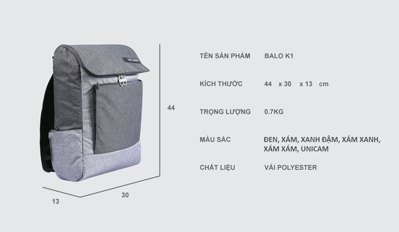 Mặt trước Balo K1 được đính LOGO hình chữ nhật bằng da được may ở bên phải phía trên của balo rất bắt mắt và dễ dàng nhìn thấy. Balo rất nhiều ngăn gồm: 1 túi phụ phía trước nhỏ có khóa kéo đựng sổ tay, kèm ngăn dắt viết, điện thoại... Bên trong túi vuông rộng, có 2 ngăn phụ bên trong đựng Laptop, Macbook, iPad, Kindle, ... riêng biệt với lớp mút PE chống sốc. Hai bên hông còn có 2 ngăn lưới đựng adapter, chai nước, vật linh tinh, ...