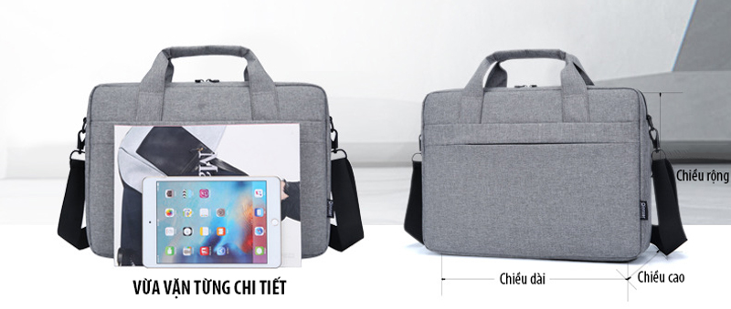 Túi xách Macbook 13 - 14 inch có kích thước tổng quát: 38 x 28 x 7 (cm) chỉ mỏng nhẹ 0.4 (kg)