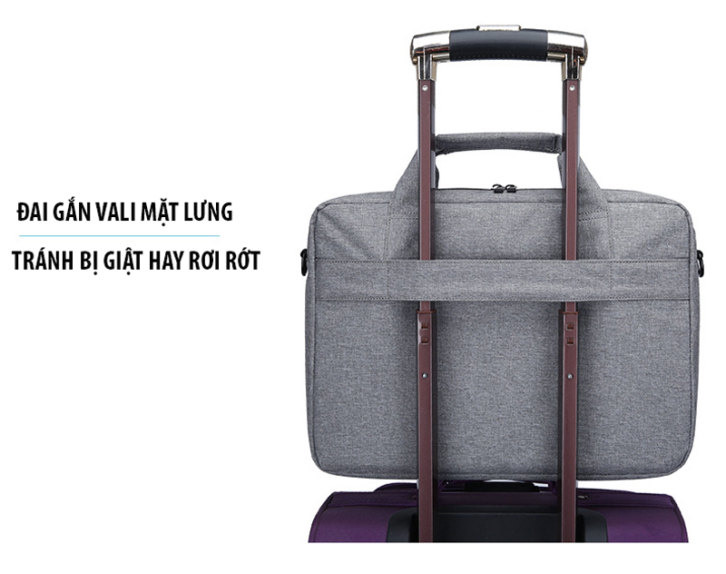 Bên trong túi lớn có 1 ngăn đệm chống sốc dùng đựng Laptop, Macbook, Surfacebook, ... kích thước tối đa 13" và 14". Ngoài ra ngăn rỗng bên ngoài đựng tài liệu, giấy tờ, ... , kèm 2 ngăn phụ nhỏ đựng pin dự phòng, chuột, điện thoại, ... và 2 ngăn dắt bút tiện lợi, tất cả được bảo vệ bằng đầu khóa kéo vô cùng an toàn. Phía trước có ngăn phụ lớn dùng đựng adapter, giấy tờ, ví,... Mặt lưng phía sau cặp xách có quai ngang dùng để gắn vào đầu kéo Vali mà không bị rớt hay bị giật, vô cùng tiện lợi.