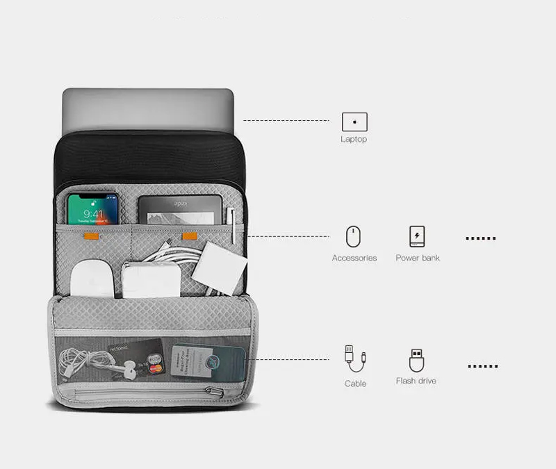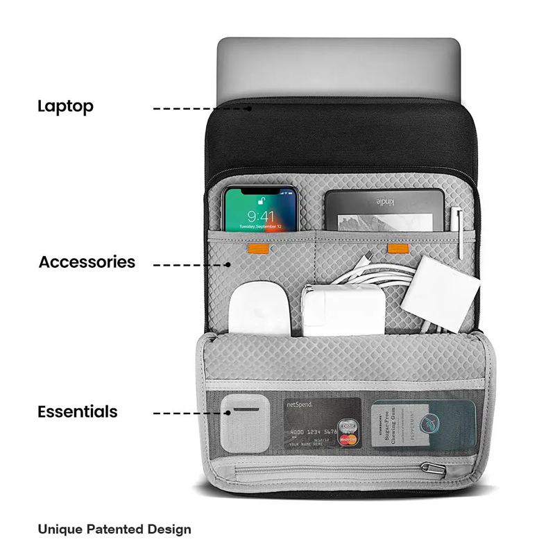 - Sức chứa lớn với thiết kế được cấp bằng sáng chế. Thiết kế thông minh, ngăn nắp cung cấp một ngăn chính để đựng máy tính xách tay và một túi phía trước có không gian ngăn nắp để đựng iPad và các vật dụng cần thiết cho công việc.
