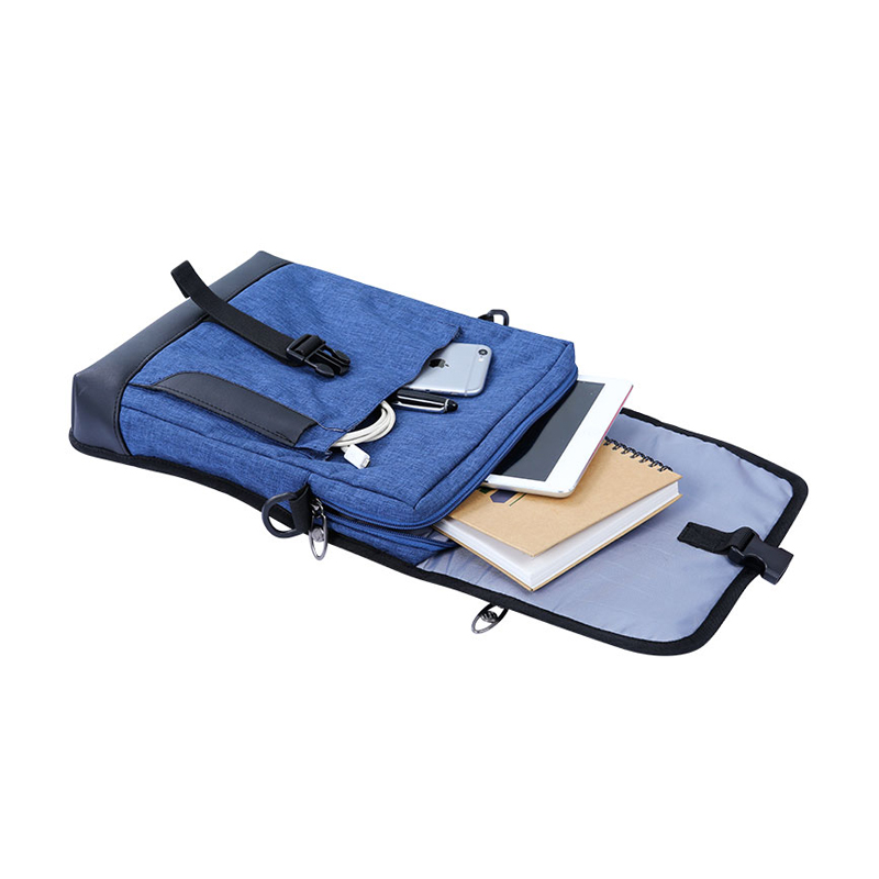 Ngăn phụ mặt trước có 2 ngăn: Ngăn nhỏ ở trên nắp túi dùng để đựng ví, điện thoại, giấy tờ, vé xe, chìa khóa, thẻ xe, ... rất dễ lấy ra/cất vào. Ngăn lớn hơn ở phía dưới bạn có thể để sách, passport, sổ tay, pin sạc dự phòng,... Kèm dắt bút tiện lợi và không bị rơi rớt ra ngoài vì được bảo vệ bằng khóa nhựa chắc chắn.