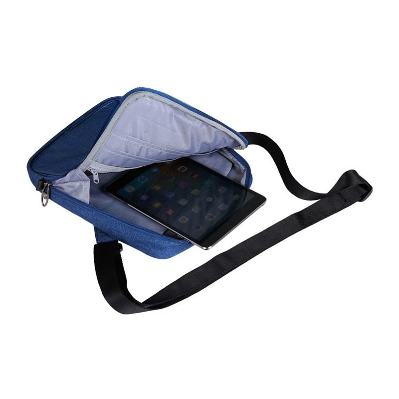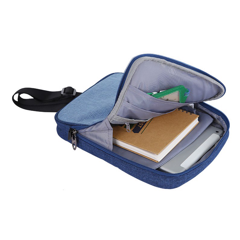 Túi đeo chéo đựng iPad được sản xuất từ chất liệu Polyester chống trầy xước, trượt nước, kháng bụi tốt bảo vệ thiết bị khi bạn hoạt động nhiều ở ngoài trời hay vô tình bị đổ tràn nước lên bề mặt túi.