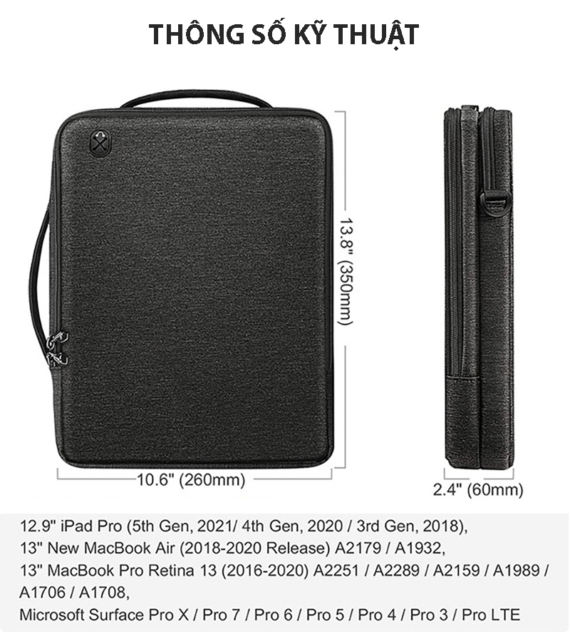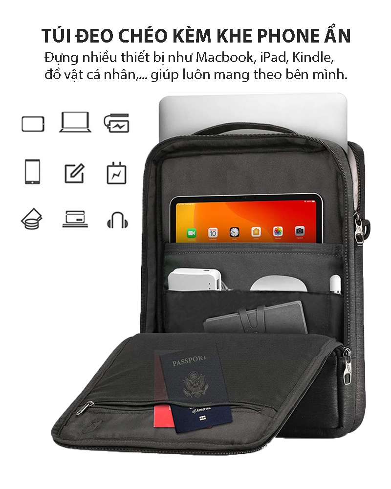Túi đeo chéo QiSKYER cho Macbook/Thinkpad/Asus/Surface 13-14 inch kèm khe phone ẩn