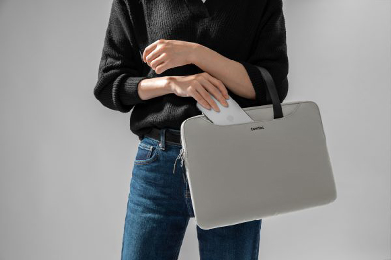 Túi chống sốc A21 có logo TOMTOC in nổi bật, sắc nét và thiết kế mỏng, thanh lịch đơn giản với những gam màu trung tính gây ấn tượng cho người dùng từ cái nhìn đầu tiên.