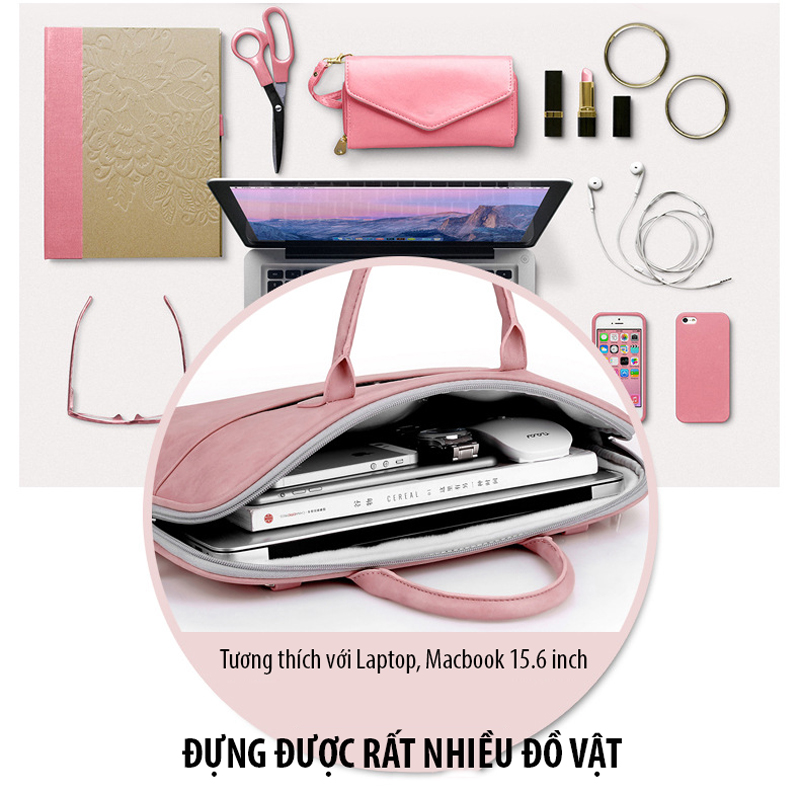 Cặp da đựng Laptop 15.6 inch có 1 ngăn chính và 1 ngăn phụ mặt sau được bảo vệ bằng đầu khóa kéo an toàn và 1 ngăn phụ nhỏ hơn bằng nút nam châm, có thể đựng rất nhiều đồ vật giúp mang theo bên mình, tránh quên khi ra ngoài như: Laptop, ô, ví, bộ trang điểm, tài liệu, phone, pin sạc dự phòng, adapter, ...