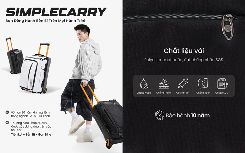 SimpleCarry là thương hiệu Ba lô, túi xách sản xuất tại Việt Nam theo tiêu chuẩn Mỹ. Vải trượt nước & kháng bụi, luôn đi đầu xu hướng thời trang với nhiều mẫu mã phù hợp với mọi đối tượng khách hàng.